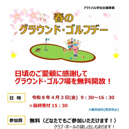 グラウンドゴルフで体を動かして、桜の木の下でお弁当をたべよう。