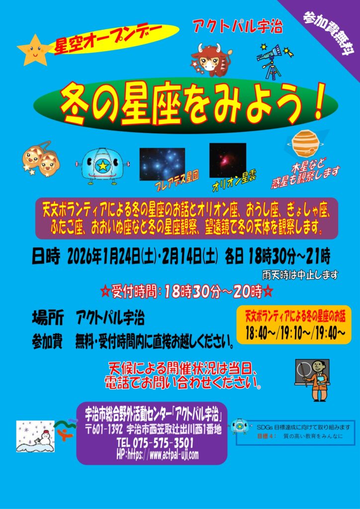 星空オープンデー「冬の星座をみよう!」【NEW】