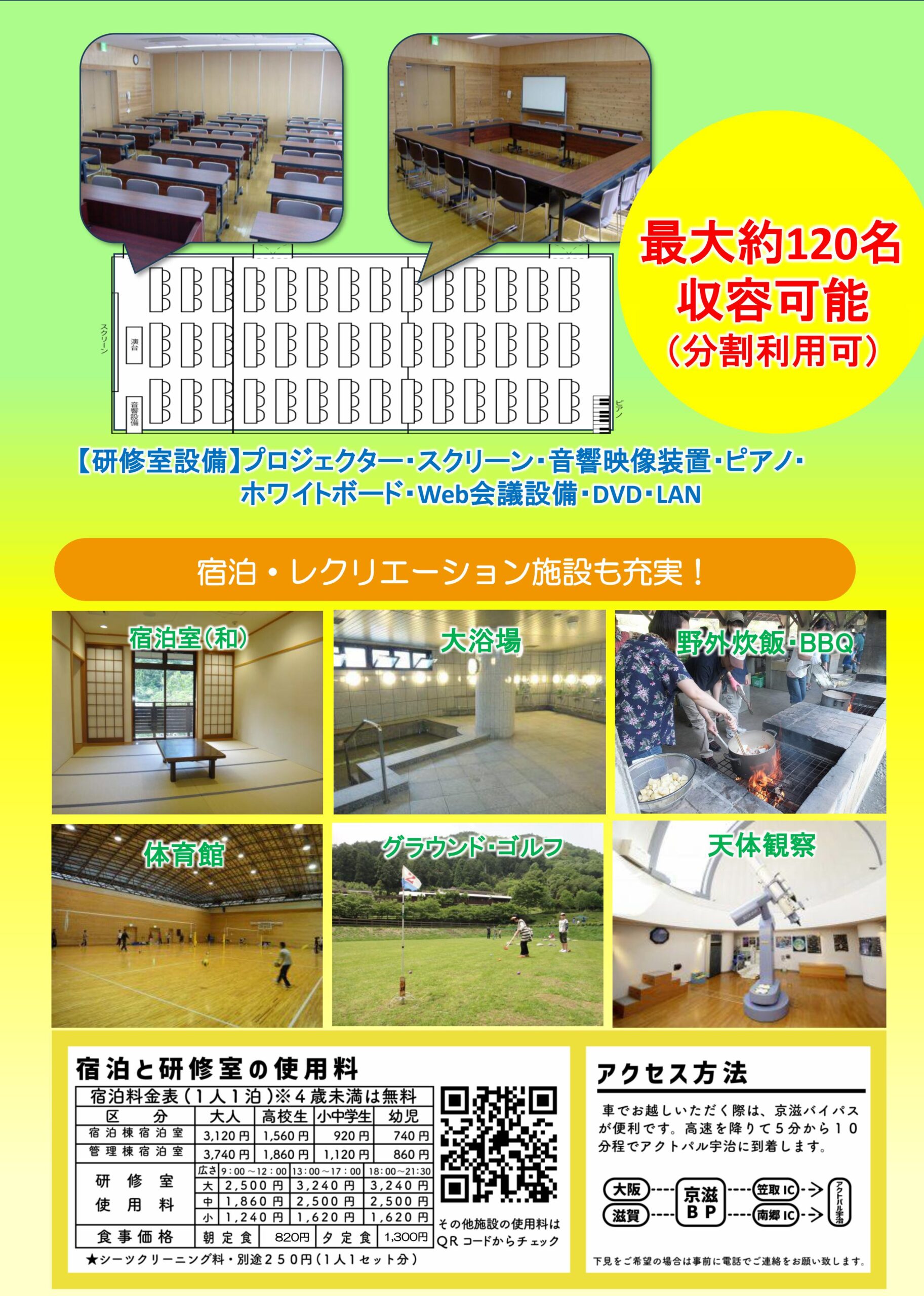 都市部やホテルではなく、自然にかこまれた環境で集中して各種研修、合宿を実施できます。